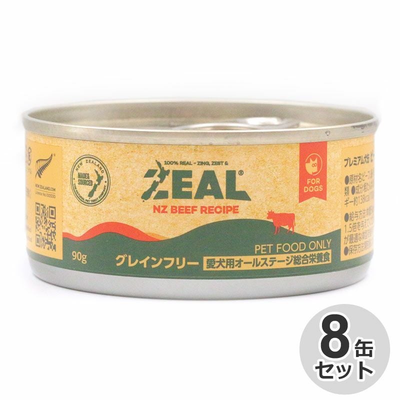 8缶セット / ZEAL グレインフリー プレミアム犬缶 ビーフ 90g